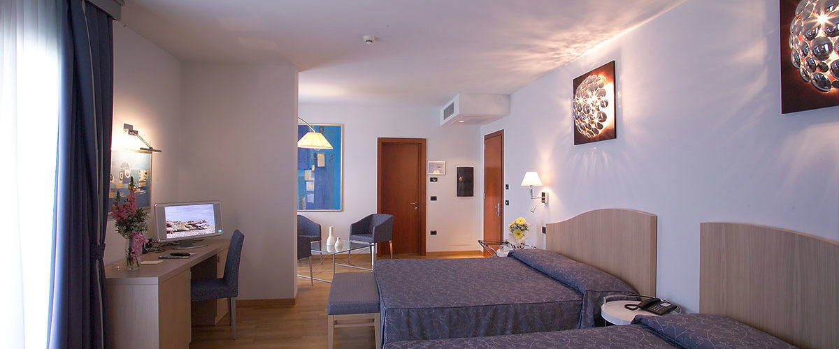 Situata all’ultimo piano in posizione centrale e tranquilla. È arredata con signorilità e semplicità, disponendo di: due letti matrimoniali “King Size”, doppi servizi (uno con vasca idromassaggio angolare e l’altro con box doccia), un angolo relax ed un ampio terrazzino. Circa 40 mq a vostra completa diposizione.